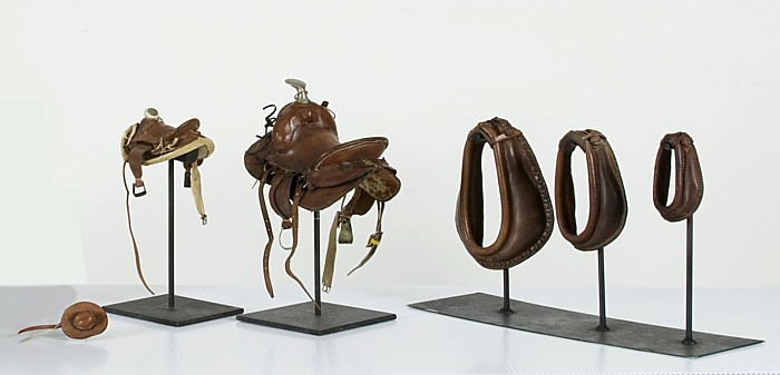 REMARKABLE SET OF SALESMAN'S SAMPLE HORSE SADDLES AND COLLARS, WITH ACCOMPANYING ITEMS, CA 1890-1920 |