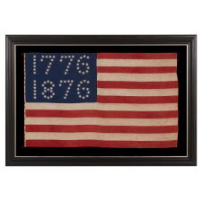 ANTIQUE AMERICAN FLAG WITH 10-POINTED STARS ARRANGED TO SPELL "1776 - 1876", ONE OF THE MOST GRAPHIC OF ALL EARLY EXAMPLES