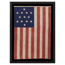 13 STAR ANTIQUE AMERICAN FLAG WITH A 3-2-3-2-3 CONFIGURATION OF STARS ON AN ATTRACTIVE, INDIGO BLUE CANTON AND WITH BEAUTIFUL, ELONGATED PROPORTIONS, LAST DECADE 19TH CENTURY