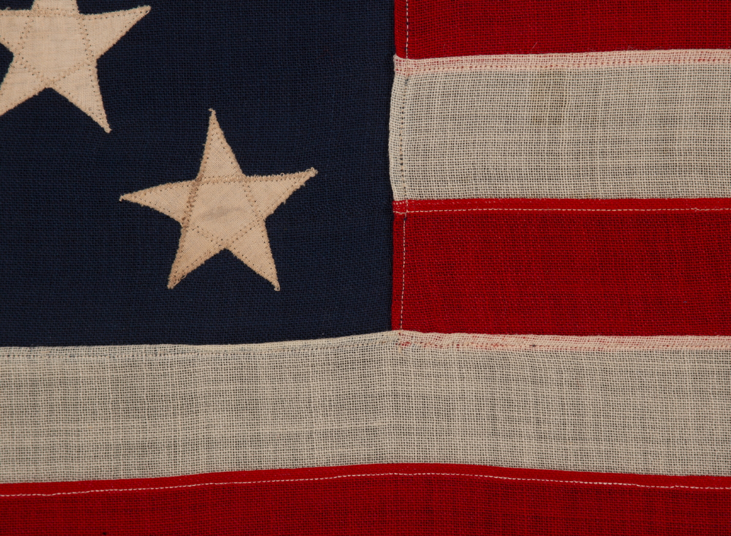 Beginning around 1890, commercial flag-makers began to produce small flags for the first time in large quantities, namely with dimensions of 2 x 3 feet, like this example, or 2.5 x 4 feet. Applying the same logic as the U.S. Navy, they chose the 13 star count rather than the full complement of stars for sake of ease and visibility. Because any flag that has previously been official remains so according to the flag acts of Congress, all 13 star, 13 stripe flags remain official national flags of the United States of America.
