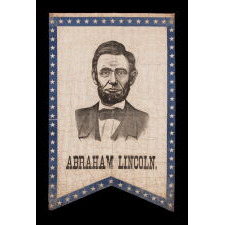 EXTREMELY RARE, SWALLOW-TAILED PARADE FLAG / BANNER WITH A PORTRAIT OF ABRAHAM LINCOLN AND A BLUE, STARRED BORDER, MADE Circa 1876-1890’s, OF A GENERAL TYPE KNOWN TO HAVE BEEN PRODUCED BY THE AMERICAN FLAG COMPANY OF NEW YORK AND OTHERS |