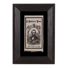 Web ID: pat-839 "A NATION'S LOSS": SILK, 1865, ABRAHAM LINCOLN MOURNING RIBBON IN AN ESPECIALLY ATTRACTIVE PORTRAIT DESIGN