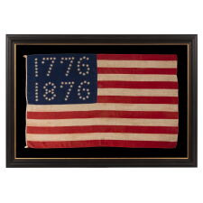 13 HALOED STARS IN A MEDALLION CONFIGURATION, ON AN EXCEPTIONALLY RARE ANTIQUE AMERICAN FLAG MADE FOR THE 1876 CENTENNIAL OF AMERICAN INDEPENDENCE