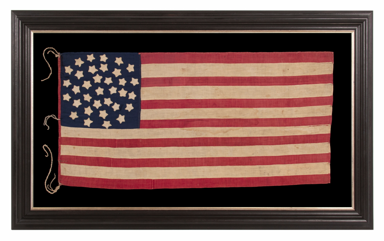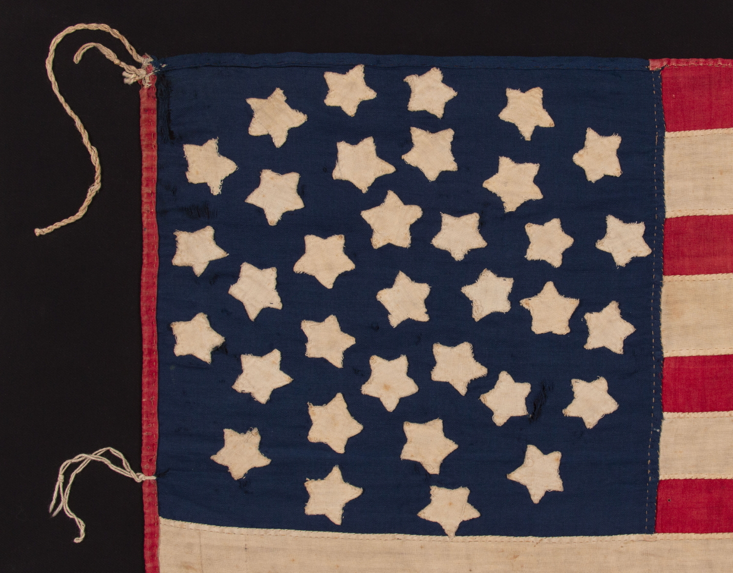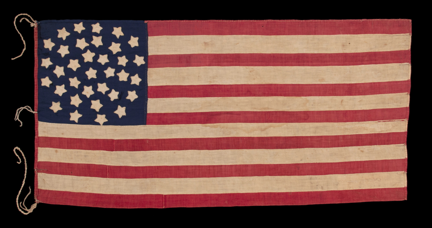 Whatever the case may be, this is a fantastic example of a sewn 34 star flag, with a beautiful configuration of stars, attractive proportions, hand-sewn, tiny, and of probable military use.