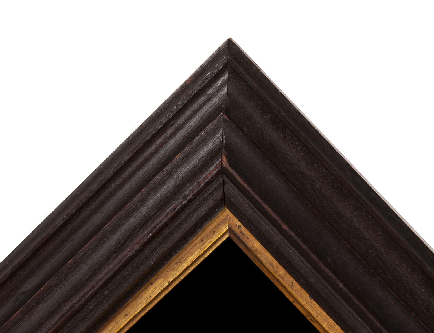 The background is 100% cotton twill, black in color. The solid walnut frame, with its original gilded liner, dates to the 1850’s -70’s era and has excellent, early, black surface. Spacers keep the textile away from the glazing, which is U.V. protective glass.