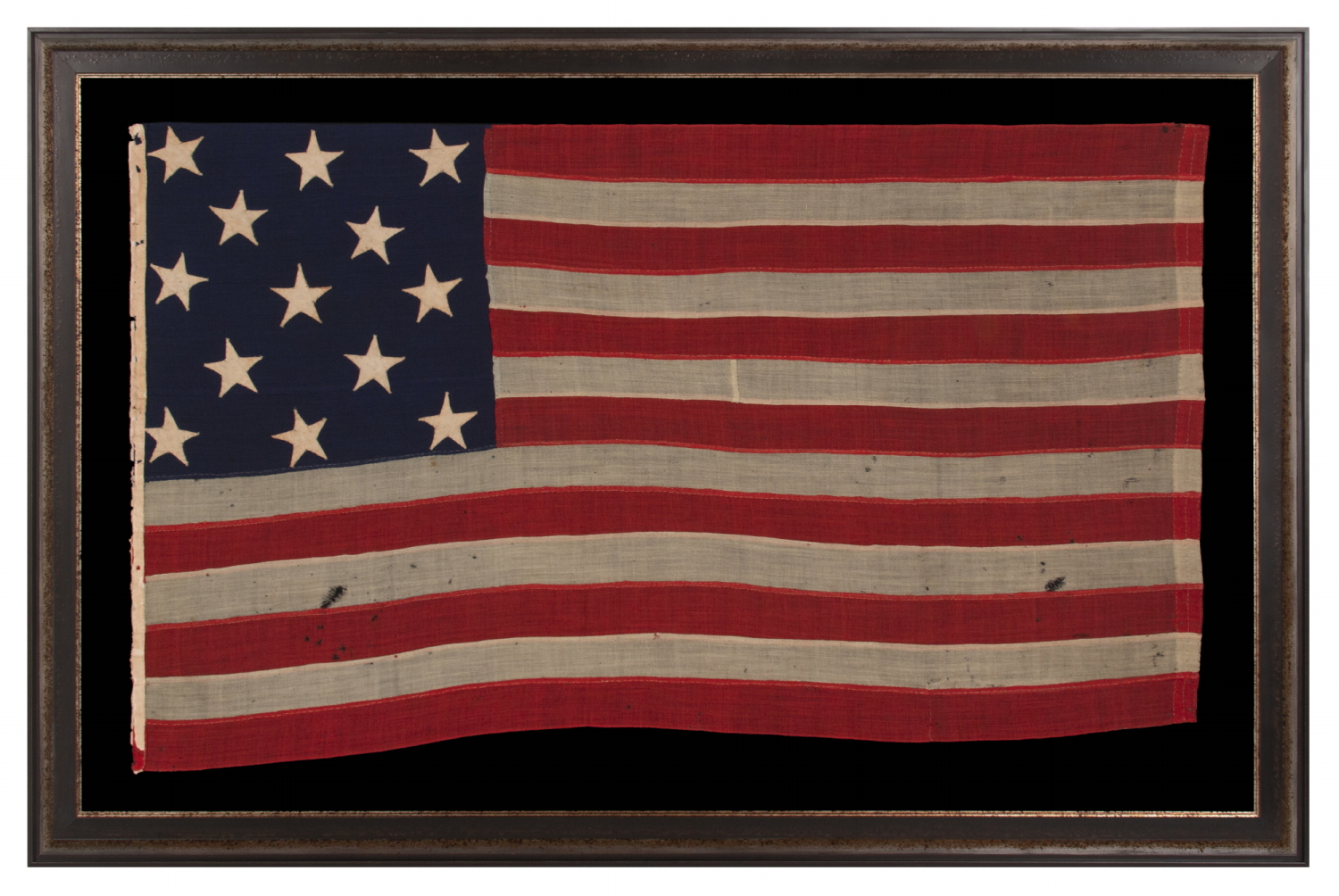 Due to a combination of U.S. Navy use, a Civil War period date, and the fact that the flag is entirely hand-sewn, along with its attractive presentation, from great texture and strong colors, this is an excellent example among 13 star flags of the latter 19th century.