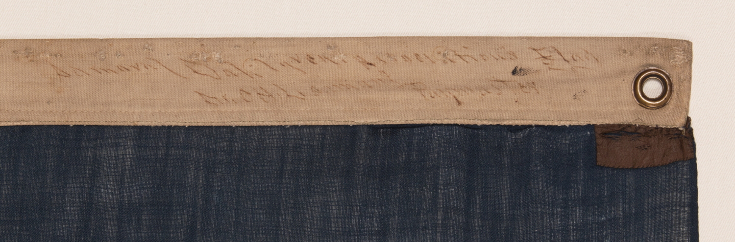 A penciled inscription along the binding of this particular flag reads: “Dahlgren Association Flag," followed by "C. H. Leaman, Paymaster."