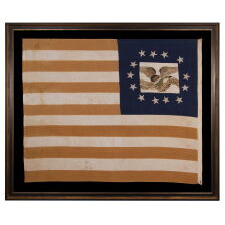 Web ID: 38j-1047 ENTIRELY HAND-SEWN ANTIQUE AMERICAN FLAG OF THE CIVIL WAR PERIOD, WITH 13 SINGLE-APPLIQUED STARS IN A BEAUTIFUL, OVAL ARRANGEMENT OF WHAT IS KNOWN AS THE 3RD MARYLAND PATTERN, MADE SOMETIME BETWEEN THE 1850’s AND THE CIVIL WAR (1861-65)