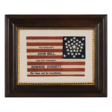 31 STAR PARADE FLAG, MADE FOR THE 1860 CAMPAIGN OF JOHN BELL & EDWARD EVERETT, WITH A “UNION AND THE CONSTITUTION” SLOGAN, PROBABLY MADE BY H.C. HOWARD OF PHILADELPHIA