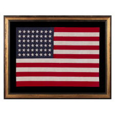 48 STARS CANTED TO THE RIGHT AND LEFT IN DANCING ROWS, A RARE VARIETY OF ANTIQUE AMERICAN PARADE FLAG IN A LARGE SCALE, 1912-1918 OR PERHAPS EARLIER, REFLECTS ARIZONA & NEW MEXICO STATEHOOD