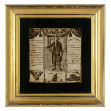 MASTERPIECE QUALITY SCHERENSCHNITTE, WITH A PATRIOTIC EAGLE AND REFERENCE TO THE 1844 NEW YORK CITY MAYORAL ELECTION OF PUBLISHING MAGNATE JAMES HARPER, SIGNED BY NY CAPENTER ROBERT W. LAWRENCE